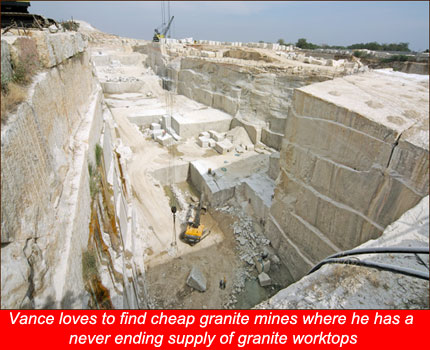 When Mr Wang tried to sell him damaged granite worktops, Vance immediately bought the quarry. Surprisingly reasonable at £30,000, if, admittedly, a death trap. That's China for you, dirt cheap and dangerous.
